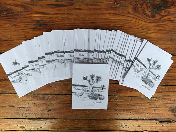 It is not my intention to create a high quality comic book here. I wanted to make a completely DIY style "mini comic" like I have done in the past. Simple photocopied books. All the drawings are originals. All the words are based on my own research. It's been more phone then I can really explain and I am so proud to see it done in it's tiny physical form. I can only dream of a future where there is maybe a third or fourth edition of Collect Call F rom the Mojave Desert. But the first edition is good enough for me.